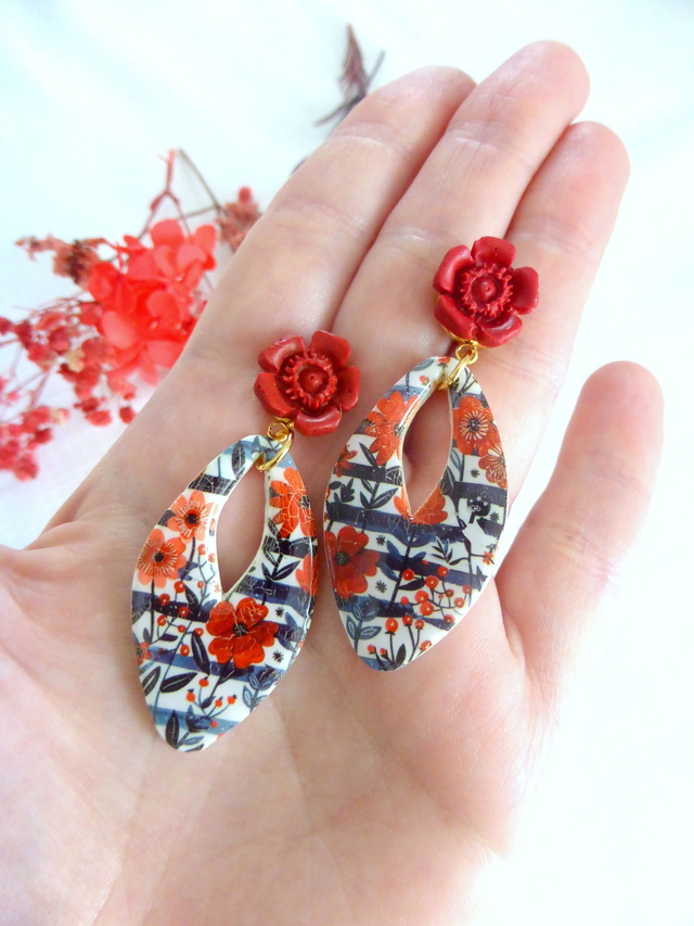 Boucles d'oreilles gouttes - Fleurs de Feu