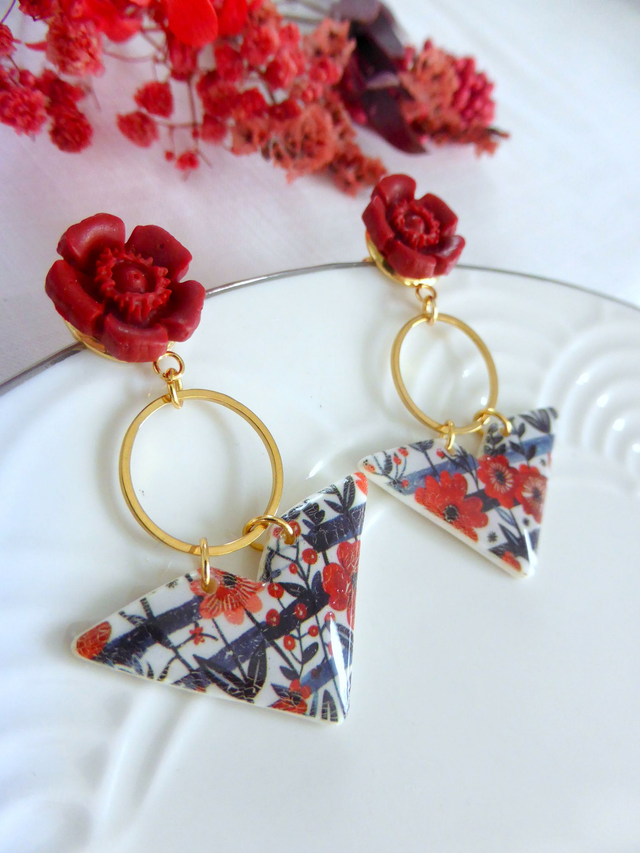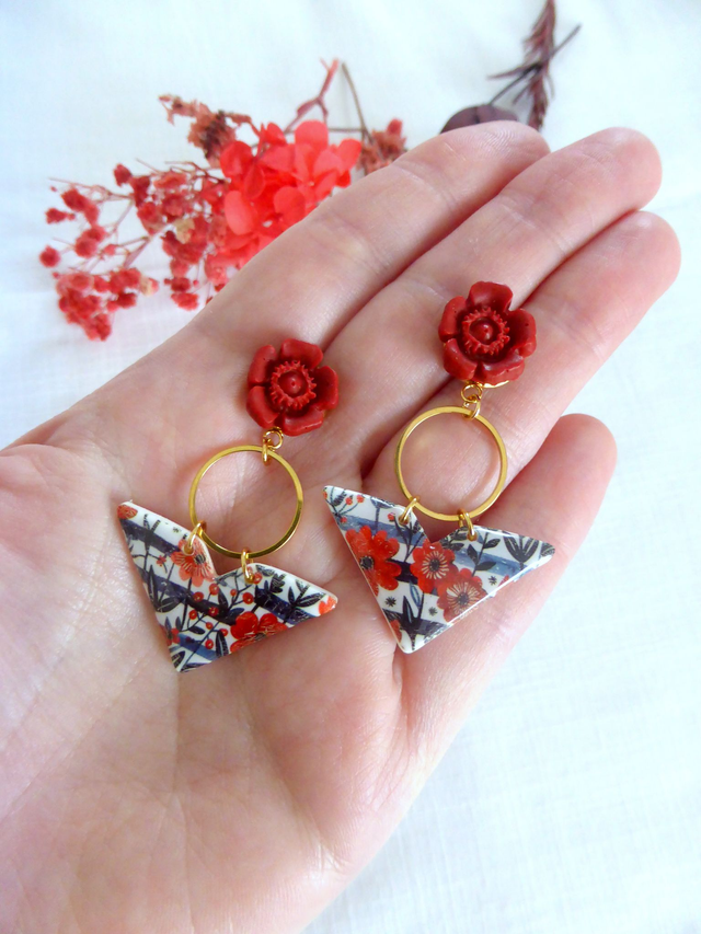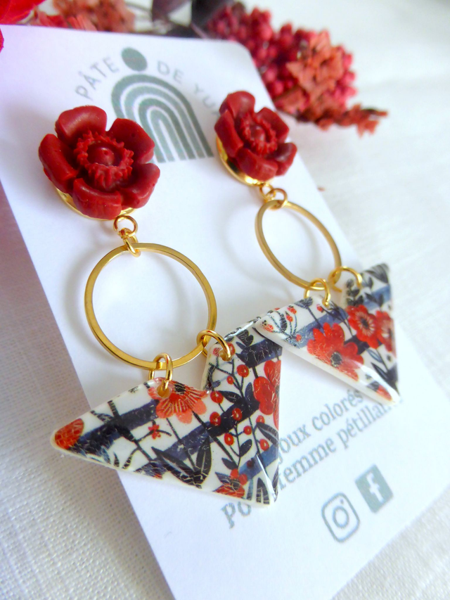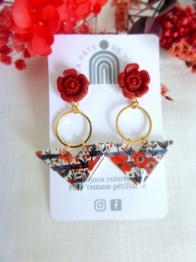 Boucles d'oreilles triangulaires - Fleurs de Feu