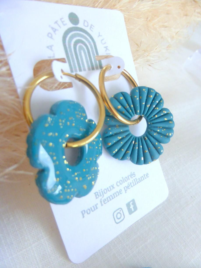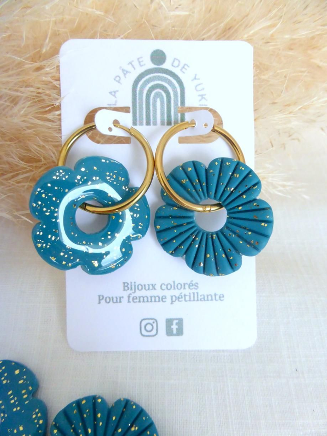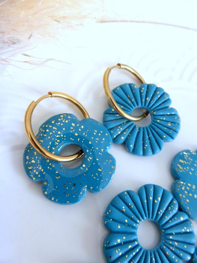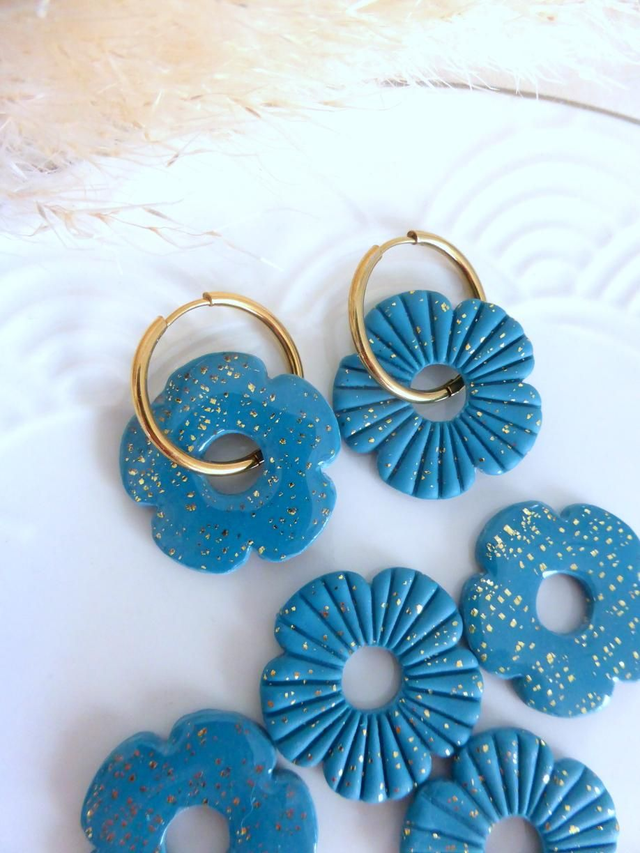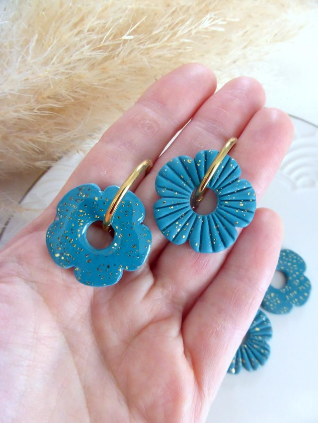 Perles fleurs pailletées bleu canard - Mix & Boucles
