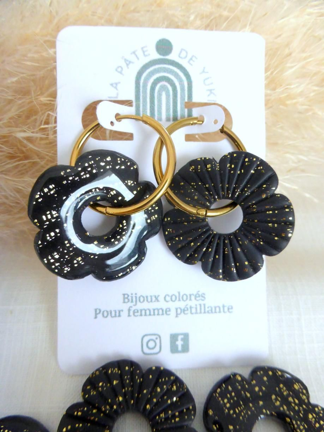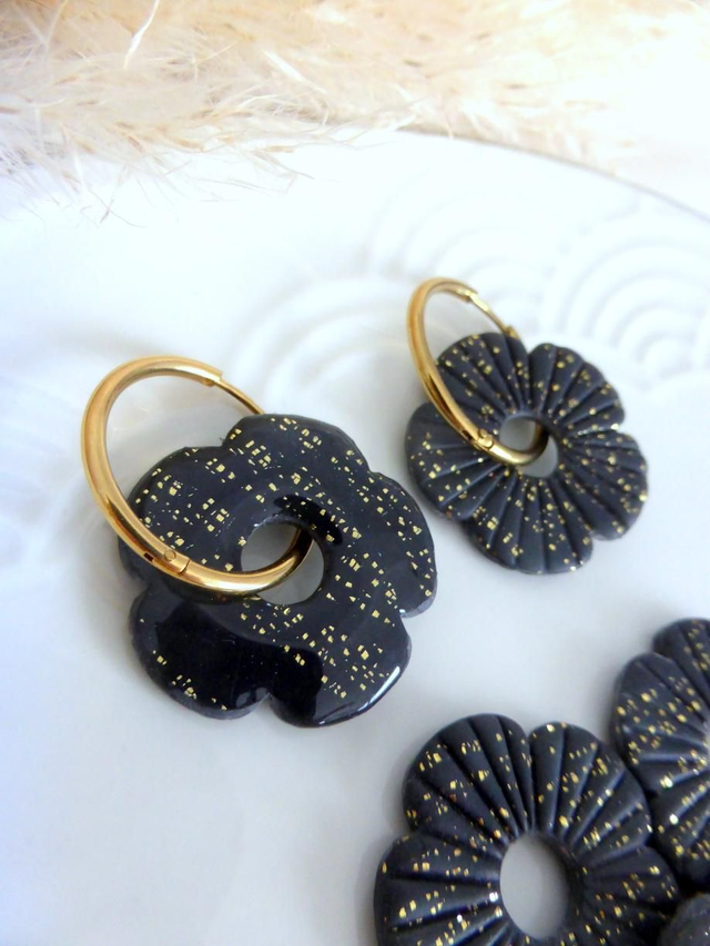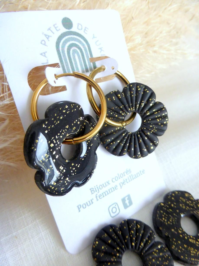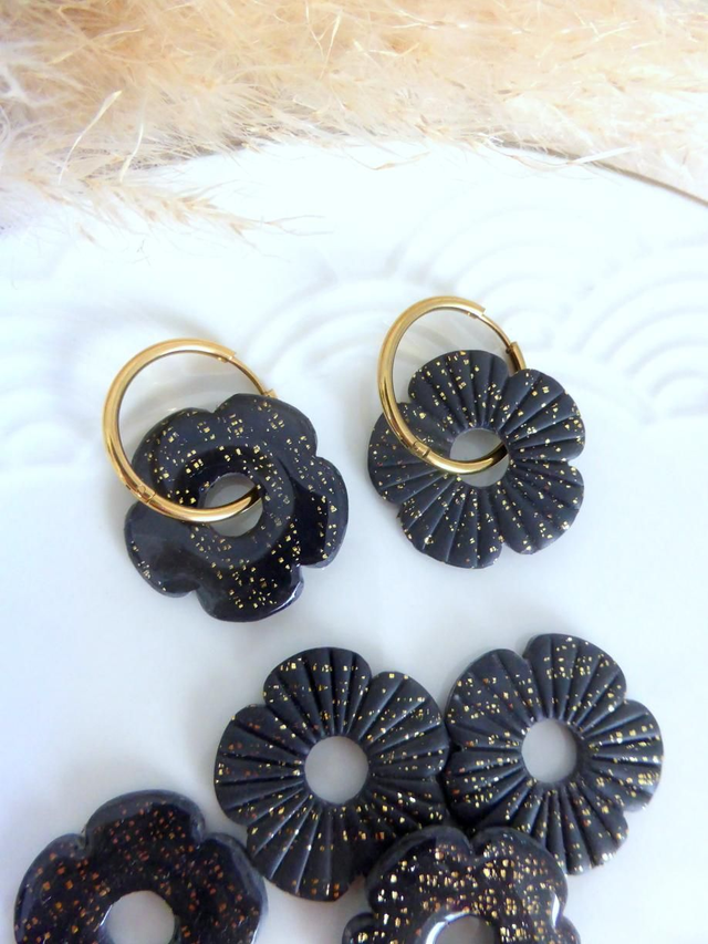 Perles fleurs pailletées noires - Mix & Boucles