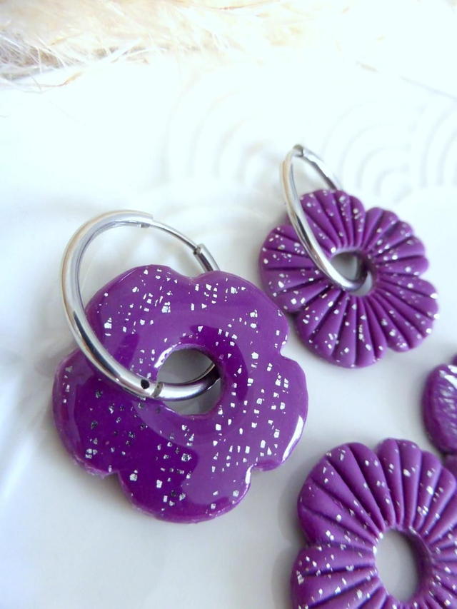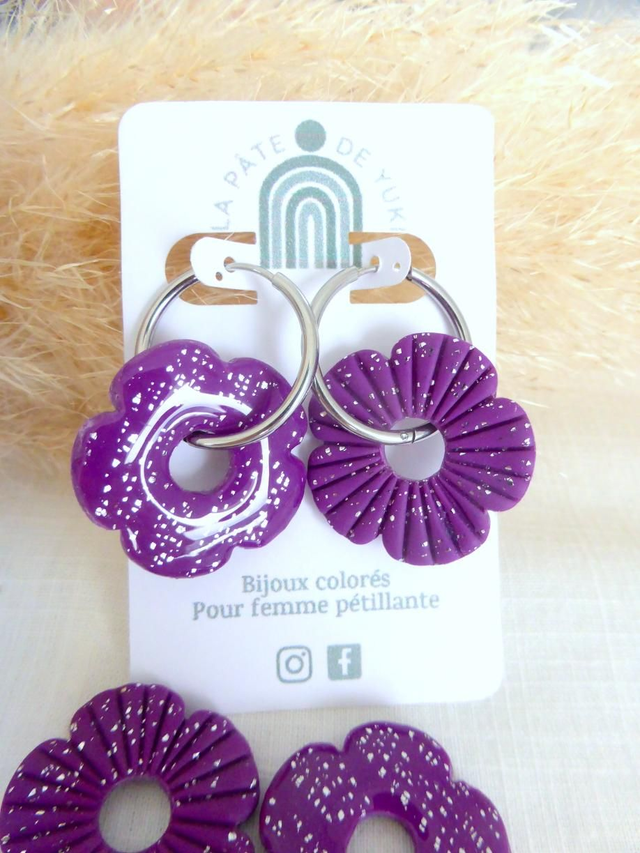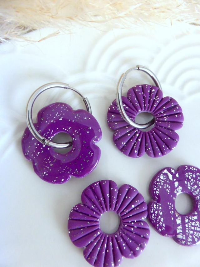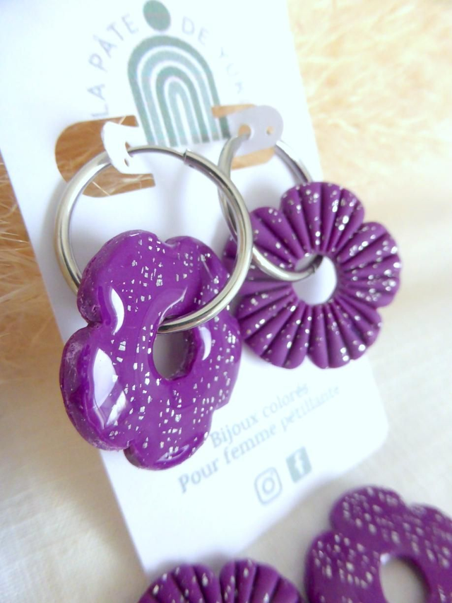 Perles fleurs pailletées violettes - Mix & Boucles